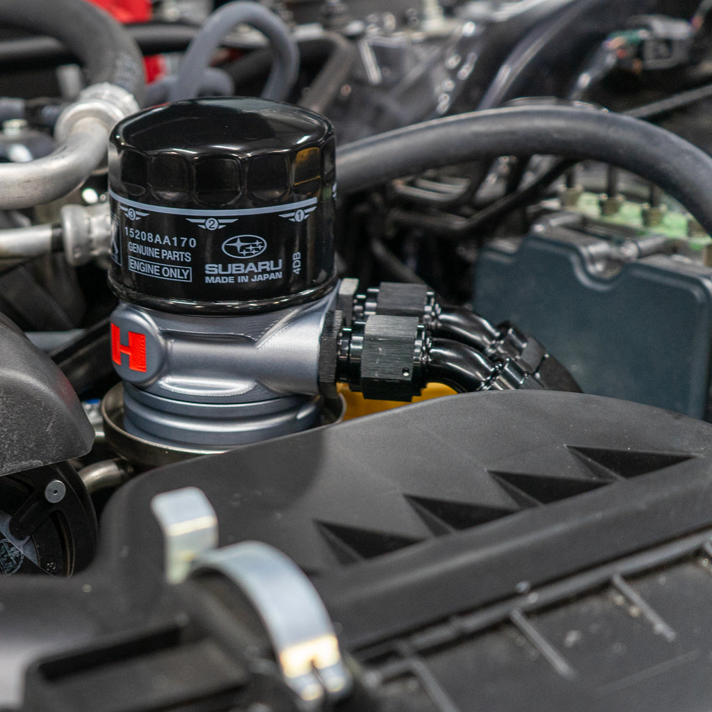 Delivered with pre-assembled braided hoses and Aluminium fittings, our comprehensive kit has everything required for a straightforward installation. Using AN8 high-flow performance hose to deliver and return oil from the external oil cooler, this kit also includes a bespoke oil filter take-off plate, which is equipped with a built-in thermostat. The thermostat ensures that your engine oil flows to the external oil cooler only when the oil reaches the desired temperature (92°C / 198°F).