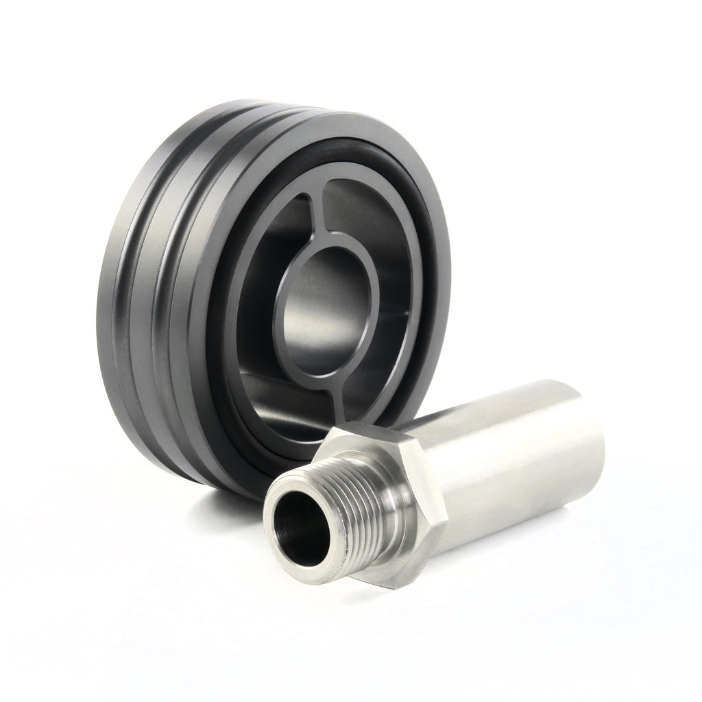If your oil system does not currently use an aftermarket oil cooler but you intend to use our standard oil filter spacer to solely move your oil filter away from the engine block, it is essential to select the standard center bolt option when purchasing. The extended centre bolt option is specifically designed for applications using an oil filter sandwich plate.